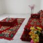 Majlis Sofa, This floor sofa set contains 1 floor seating couch, 2 backrest pillows, 2 armrest pillows, 1 ottoman, 1 rug.